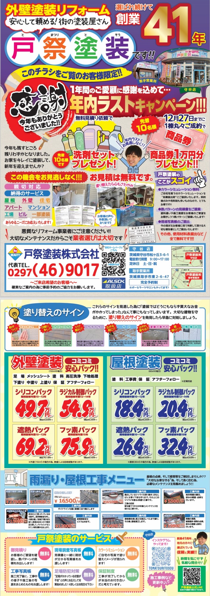 おかげさまで戸祭塗装は、創業41年を迎えることができました。