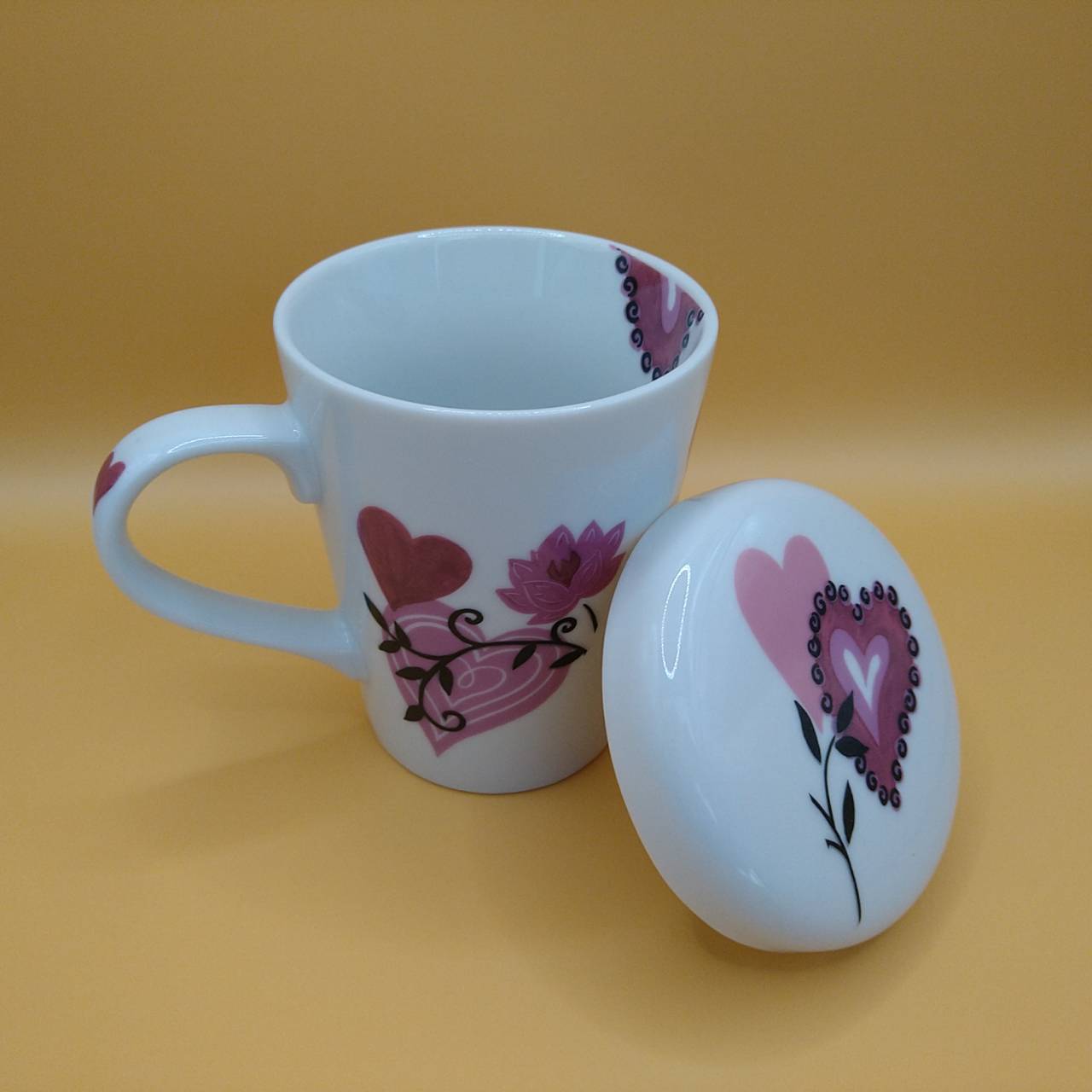今回は蓋付きのマグカップをご主人とご自分用に2つ制作しました。